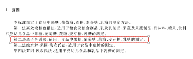 GB 5009.8-2023《食品安全國家標準食品中果糖、葡萄糖、蔗糖、麥芽糖、乳糖的測定》明確了食品中五種糖的檢測方法,其中離子色譜法作為第二法適用于全品類食品果糖、葡萄糖、蔗糖、麥芽糖、乳糖的測定,是應用范圍最廣的檢測方法。
